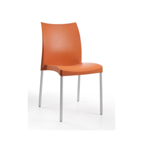 İstiflenebilir sandalye; gaz enjeksiyon teknolojisi sayesinde güçlendirilmiş polipropilen gövde ve mat eloksallı alüminyum ayak ile imal edilmiştir. UV korumalıdır. Antistatik özellik taşır. Dış mekan kullanımına uygundur.